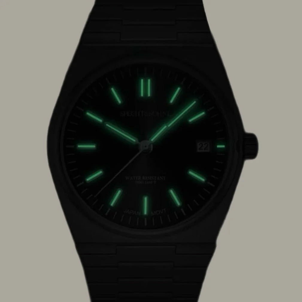 Our timepieces are distinguished by their radiant watch face bezels, which glow luminously in the dark. Crafted with materials that capture and emit light, each watch is a beacon of luxury, seamlessly blending functionality with an elegant aesthetic.
